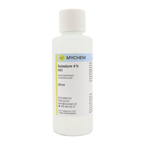 Prêt à l'emploi Solution d'acide chlorhydrique à 4 % (HCl)Disponible en trois degrés de pureté : technique et puriss- selon le domaine d'application. Idéal pour une utilisation en laboratoire, pour la correction du pH ou pour les processus de nettoyage technique.