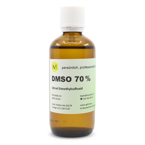 DMSO 70% in dreifach gefiltertem Wasser 100 ml: Braunglas Flasche mit Kindersicherung, Originalitätsverschluss und Tropfenzähler aus HDPE.