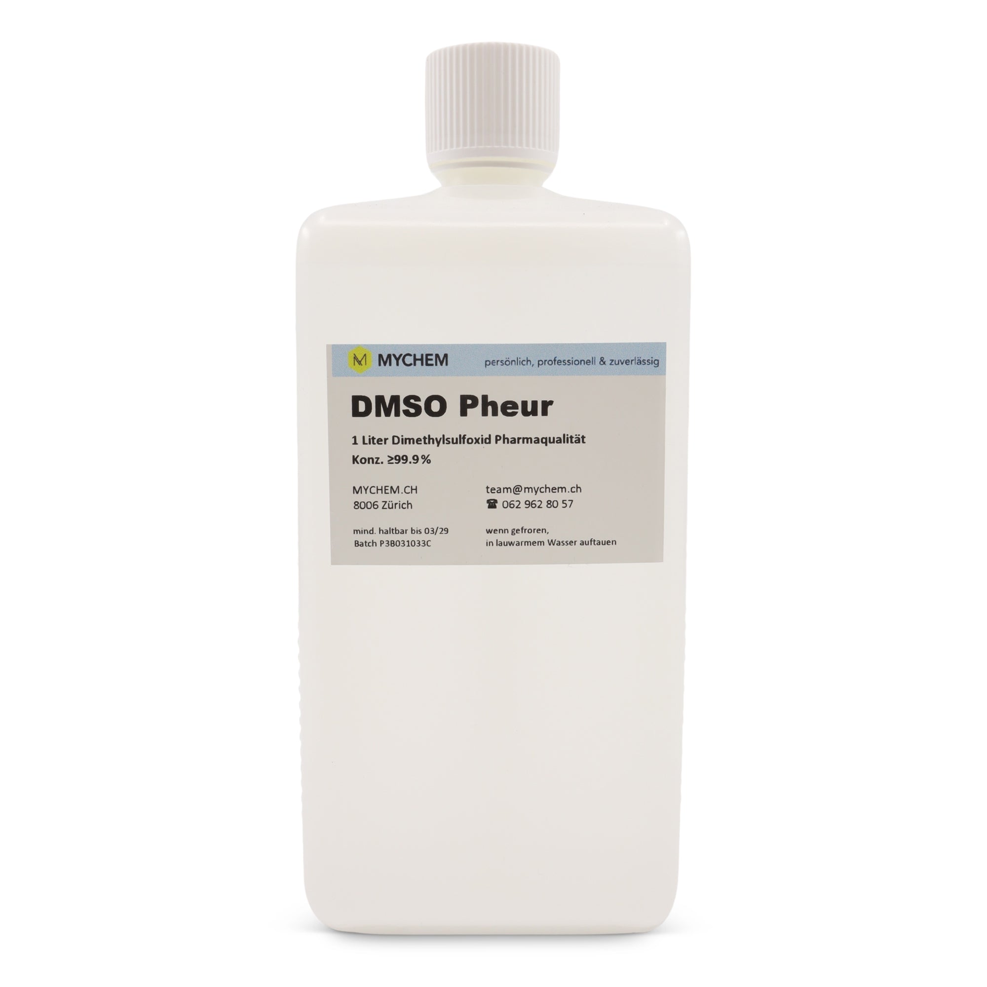 Hochreines Dimethylsulfoxid (DMSO) in technischer und pharmazeutischer Qualität, erhältlich in den Konzentrationen 70 %, 99,7 % sowie 99,9 % Ph. Eur.