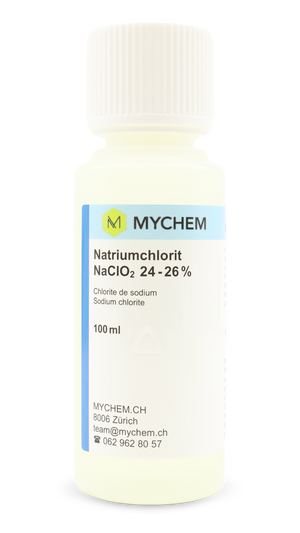 Natriumchlorit 24-26% 100 ml technisch: HDPE-Flasche mit Originalitätsverschluss, Kindersicherung und tastbarem Warnsymbol. ! kein Tropfenzähler !