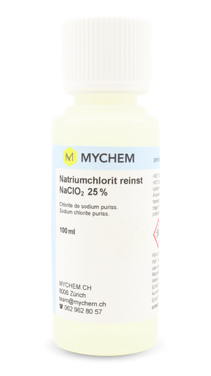 Natriumchlorit 25% 100 ml reinst: HDPE-Flasche mit Originalitätsverschluss, Kindersicherung und tastbarem Warnsymbol. ! kein Tropfenzähler !